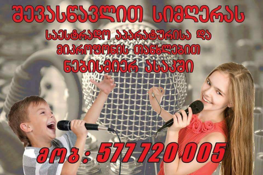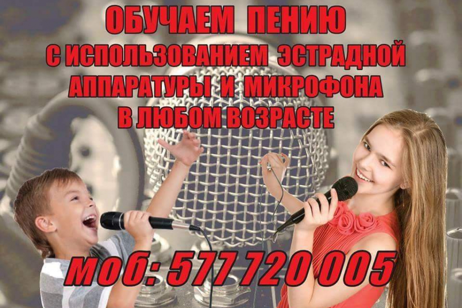 შევასწლით კლასიკურ და საესტრადო ვოკალურ სიმღერას სყველა მსურველს, საესტრადო აპარატურისა და მიკროფონის გამოყენებით... ჩვენი გამოცდილებით კმაყოფილი დარჩებით... დაგვიკავშირდით: მობილური - 577720005 მაესტრო.